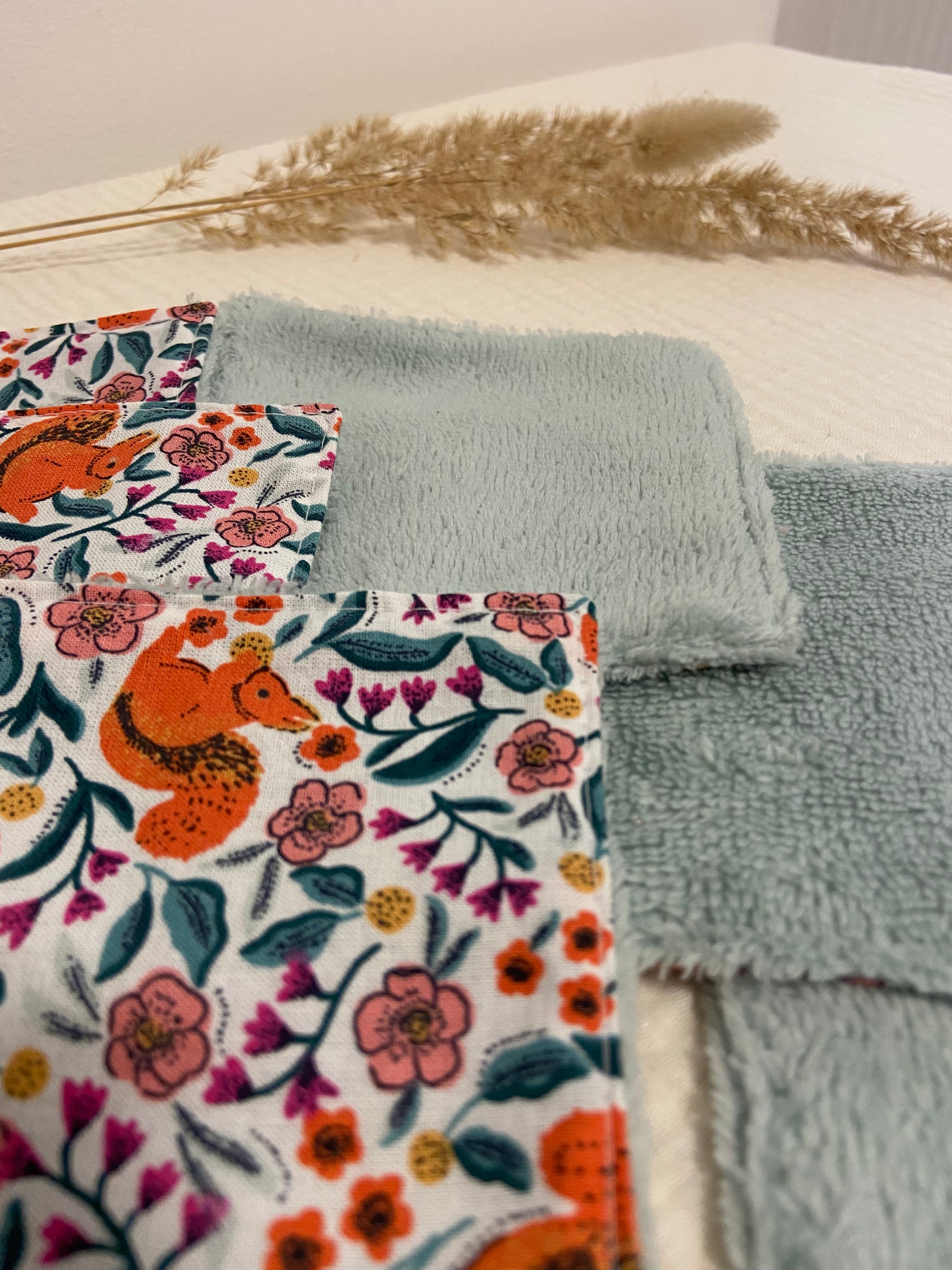 🌸 Coton Ecureuil des bois - éponge bambou bleu